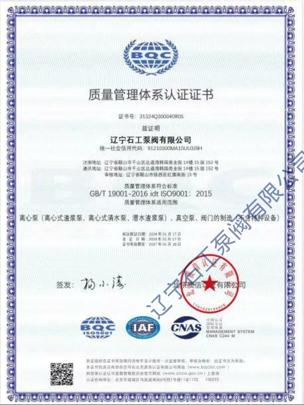 遼寧石工泵閥 有限公司 致力于研究、設計、生產及銷售各種工業(yè)水泵。公司秉承“質量為主,客戶至上”的原則,為客戶提供渣漿泵、壓濾機入料泵、液下泵、清水泵、多級泵、雙吸泵、管道泵、化工泵、氟塑料泵、潛污泵、深井泵、潛水渣漿泵、泡沫泵、沙礫泵等產品。公司有多年的生產經驗,良好的管理體系和質量保證體系,我公司擁有雄厚的生產技術力量,完善的生產保障、質量保證監(jiān)督體系和專業(yè)型精神隊伍。 產品主要為煤炭、電力...